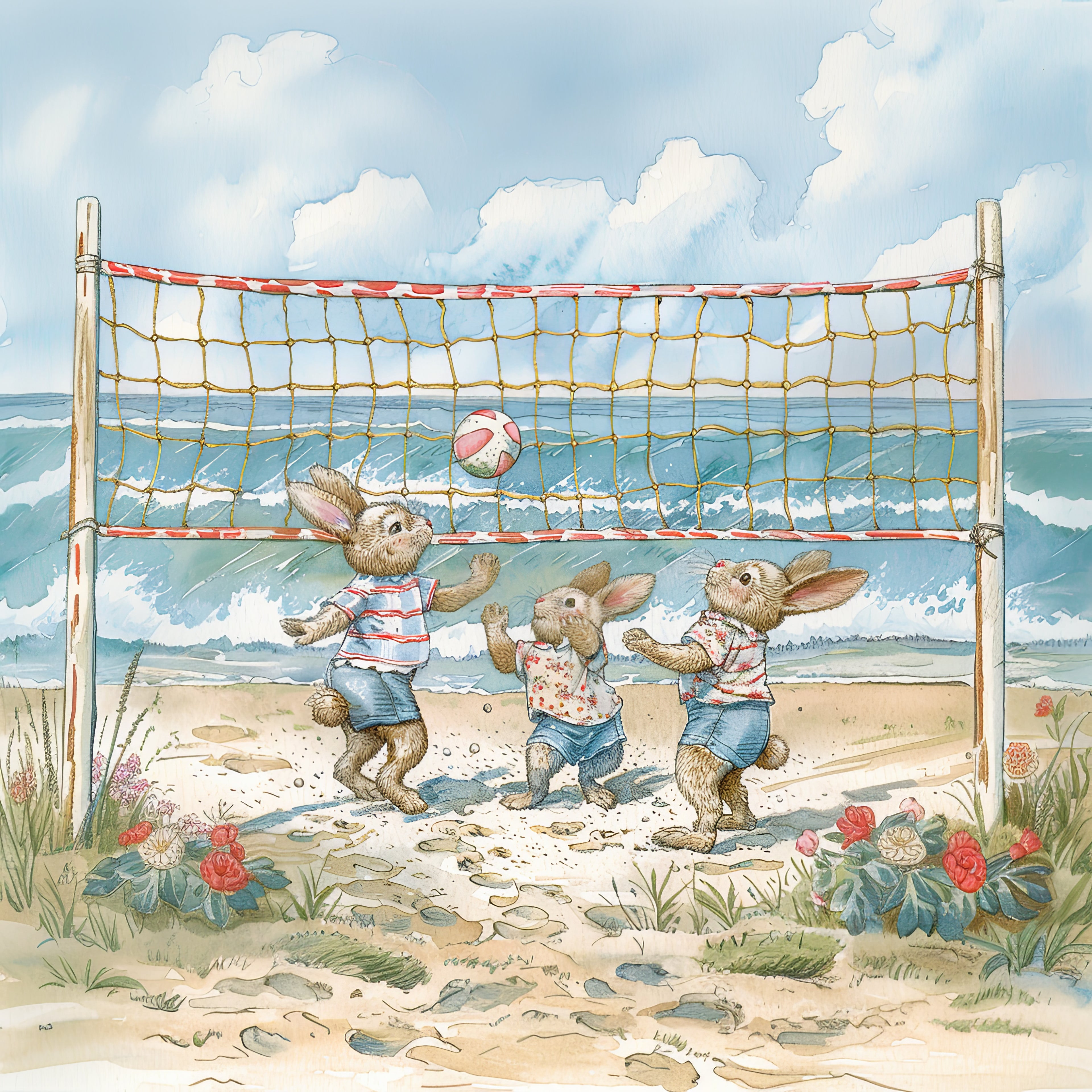 Beach Bunnies Seaside Picnic | Vintage Children's Illustration | Instant Digital Download